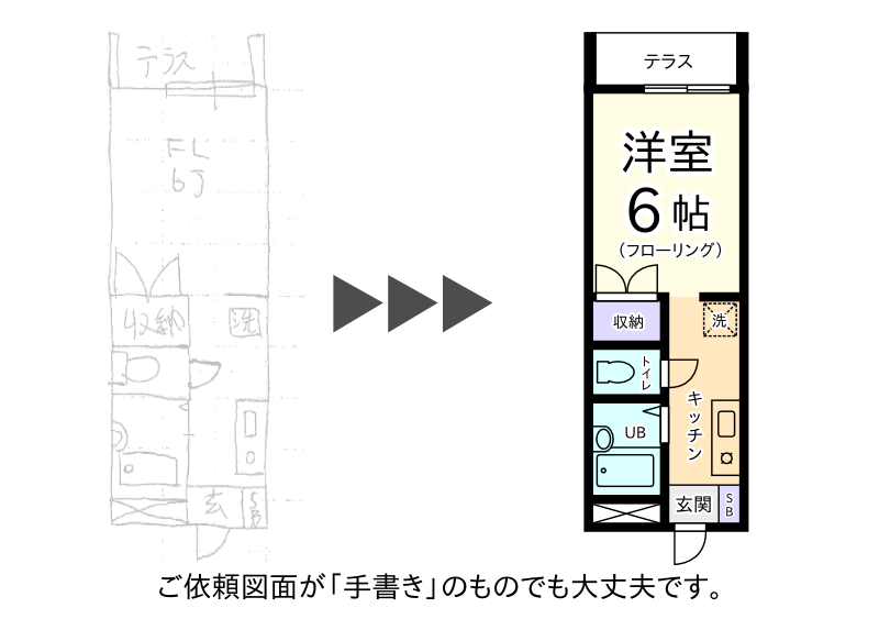 ■間取図・区画図等を「お安く」、「スピーディー」に製作(トレース)いたします。
